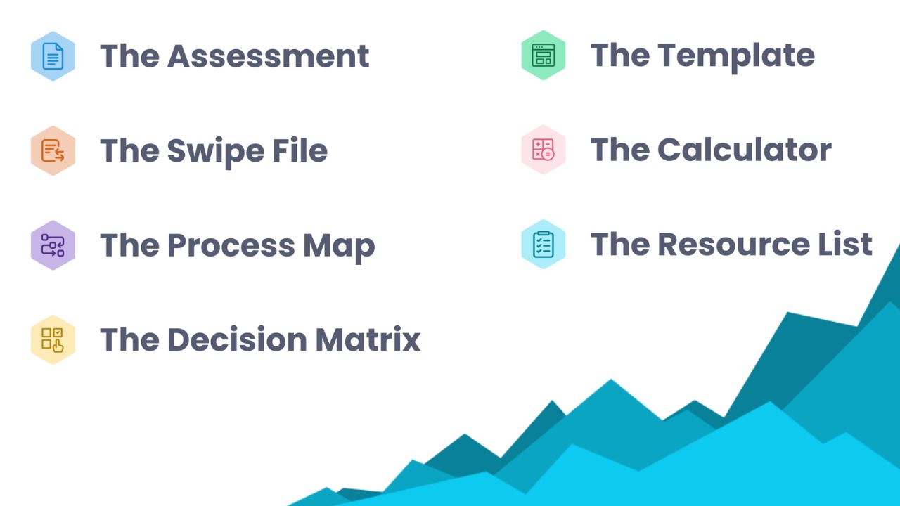 The key is to match the format to your prospect’s immediate need. Are they confused and need clarity? Use an assessment. Are they stuck and need inspiration? Put together a swipe file? Are they overwhelmed and need structure? Give them a template.