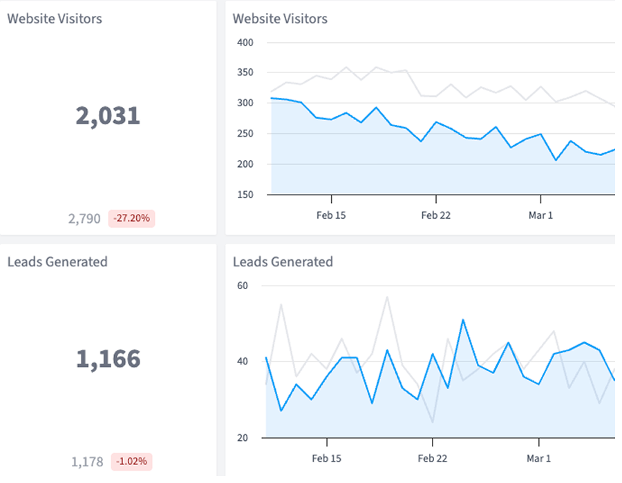 Track visitors, leads, and customer conversions overall and by channel. Spot misalignments in the quantity and quality of your traffic, leads and conversions. Then check performance over time to identify trends and patterns in your performance.