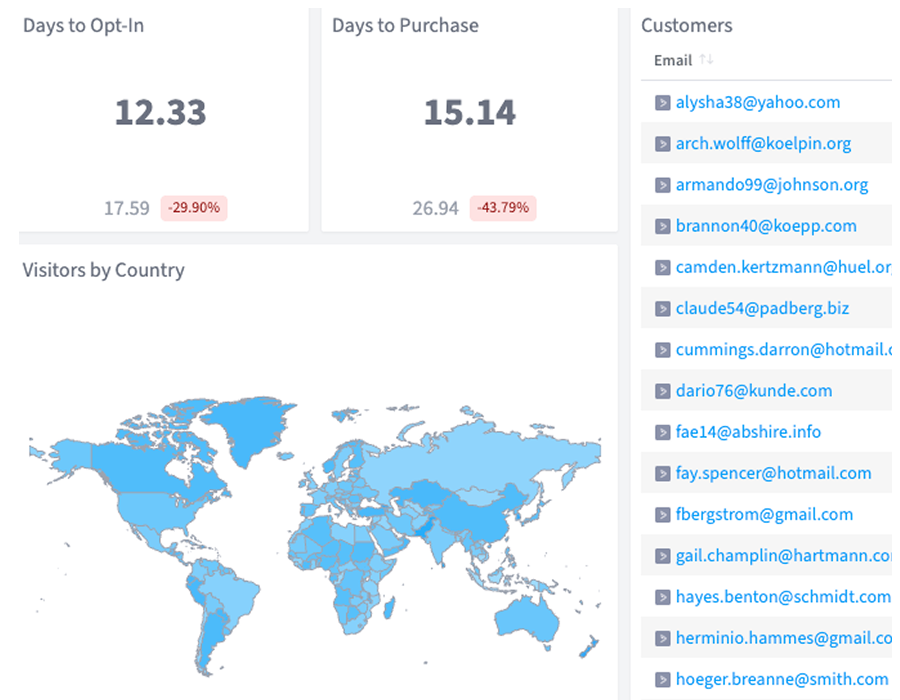 For this, you need SegMetrics. Our Website Engagement Tracker Dashboard puts all this information at your fingertips. Track your visitors and the most popular pages on your site. Monitor your opt-in and visitor-to-customer conversion rates over time. And check your average days to opt-in and days to purchase to keep your business moving forward.