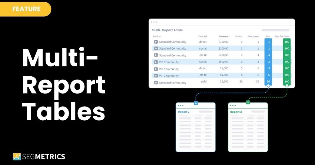 Stop hopping between spreadsheets! SegMetrics' new Multi-Report Tables allow you to combine data from different reports into a single-clean table.